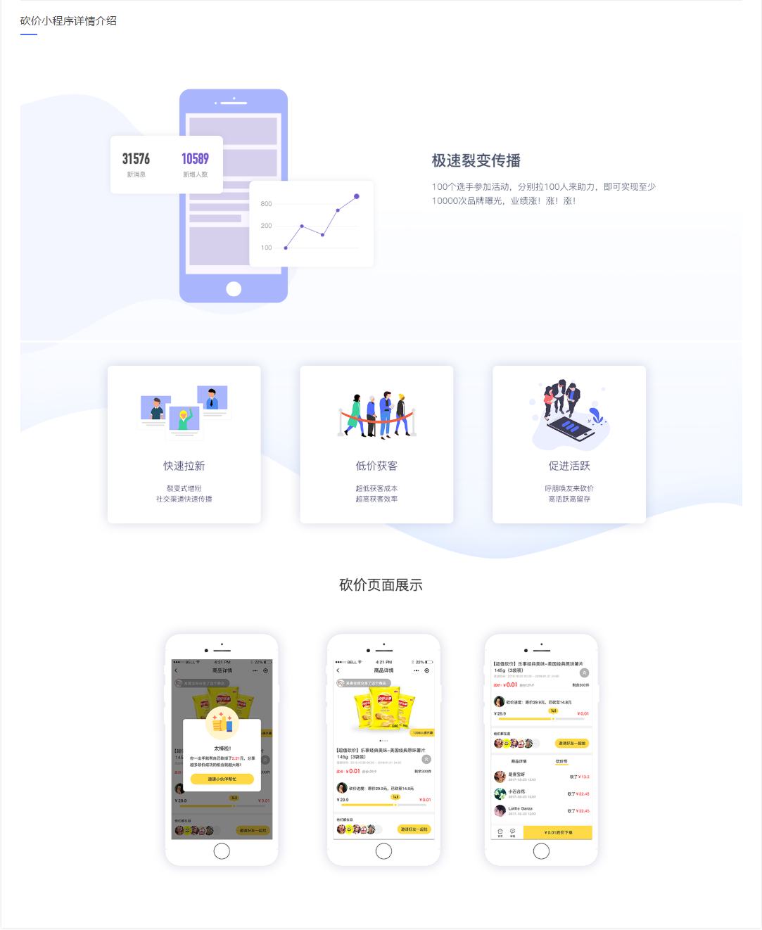 轻晓云微砍价是一款引导用户邀请好友砍价后低价购买,为商家活动进行裂变拉新,提升活跃度。微砍价极速的裂变传播方式,短时间内能够为平台获取大量的新用户。